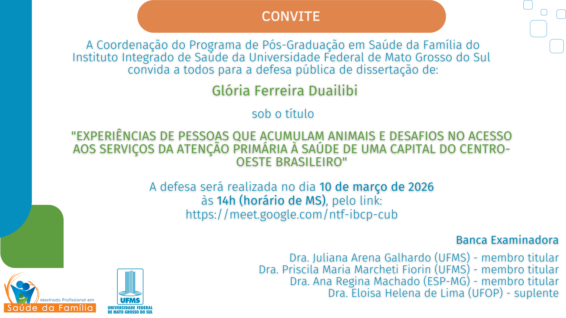 Convite – Defesa de Dissertação – GLÓRIA FERREIRA DUAILIBI – 10/03/2026