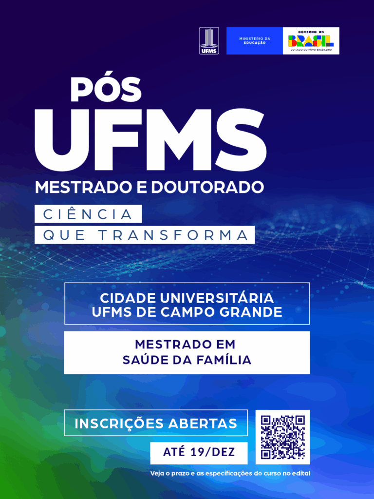 Foi divulgado o Edital do Processo Seletivo para preenchimento de vagas no Mestrado Profissional em Saúde da Família, a inscrição é gratuita e estará aberta entre os dias 5 de novembro e 19 de dezembro de 2025.